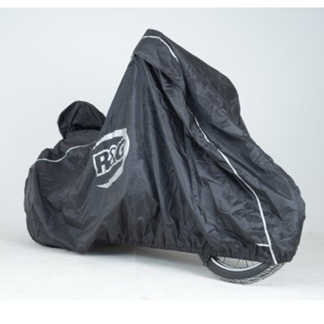 R&G’s award winning outdoor bike covers have been designed to include many new features. Based off the original award winning design and made of quality waterproof material, the cover features elasticated rim and Belly straps as standard to ensure the cover stays fixed in place and stops wind, mud or water getting up inside the cover and ensure a tight fit around the base. Front and rear chain loops for security devices covered by a velcro® closing flap to ensure the cover is fully waterproof. High-visibility reflective logos and trim piping for additional visibility at night.