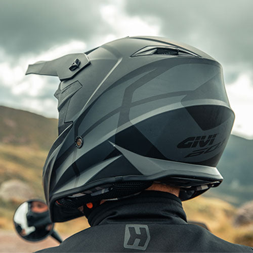 Full-face visor-free MX helmet. Givi has been making great quality, high value helmets for years, and H601 is no exception. Equipped with upper air ventilation and two rear extractors, a chin guard and removable breath guard. Removable and washable inner lining. Double D-ring fastening.